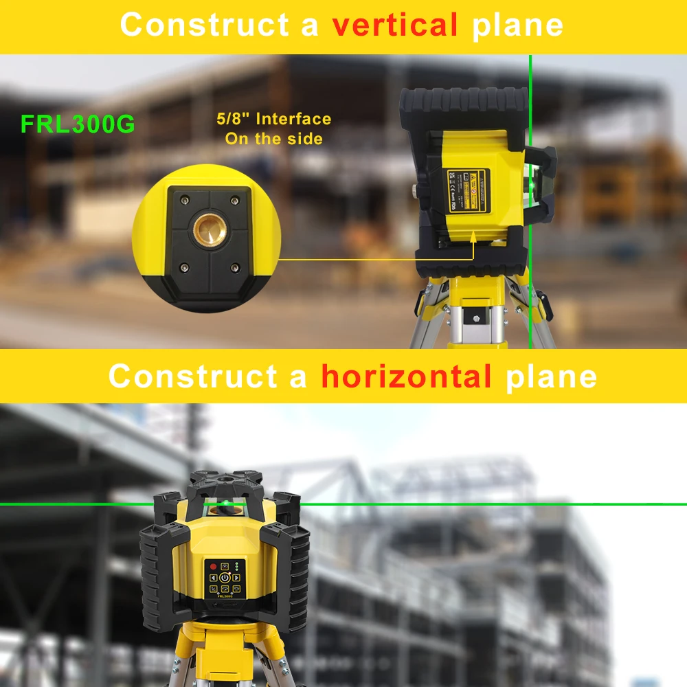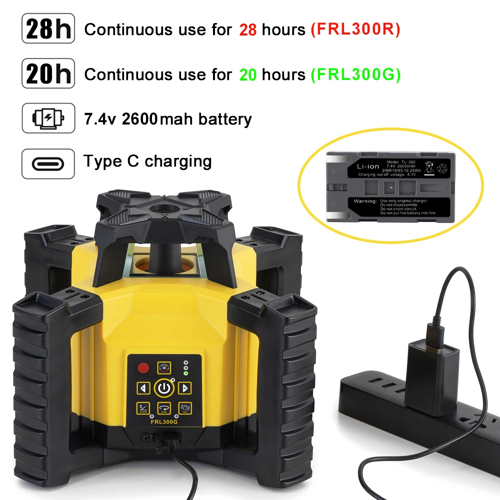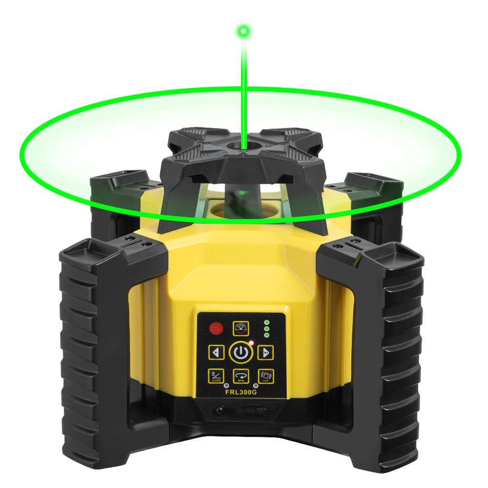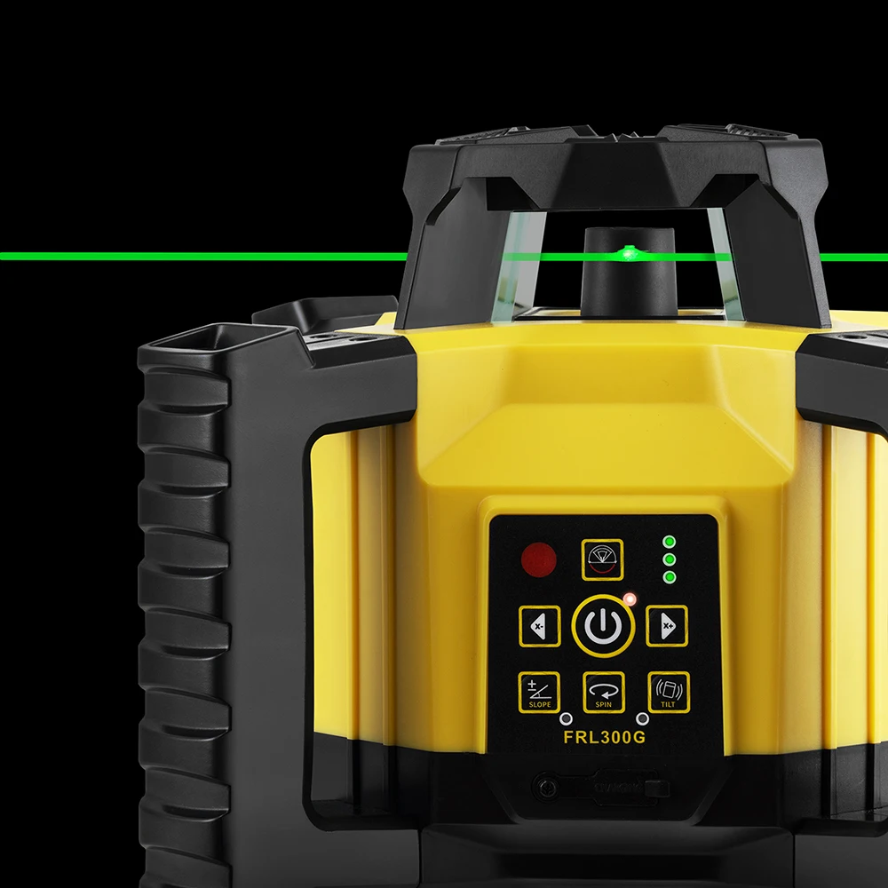 The Firecore rotary level is designed for use on indoor and outdoor construction sites. FRL300G, it can build both horizontal and vertical planes; while FRL300R only supports horizontal planes.The operating range of a receiver using a laser transmitter can reach 600 meters in diameter. The degree of protection against dust and moisture is IP55. With a capacity of 2,600 mAh, The continuous working time of FRL300R can reach 28 hours, while FRL300G is 20 hours. This type of battery allows efficient operation of the equipment at subzero temperatures. The radiator rotation speed is 0 300 600 revolutions per minute. There is a standard 5/8-inch diameter threaded hole at the bottom of the rotating level for mounting on a geodetic tripod.